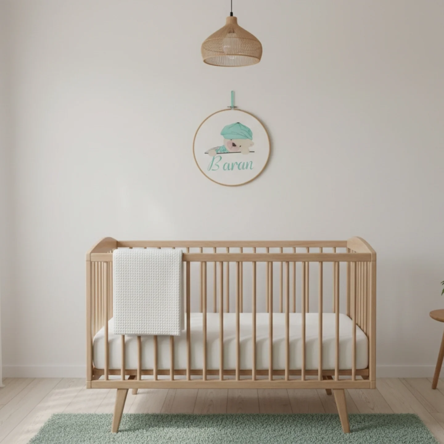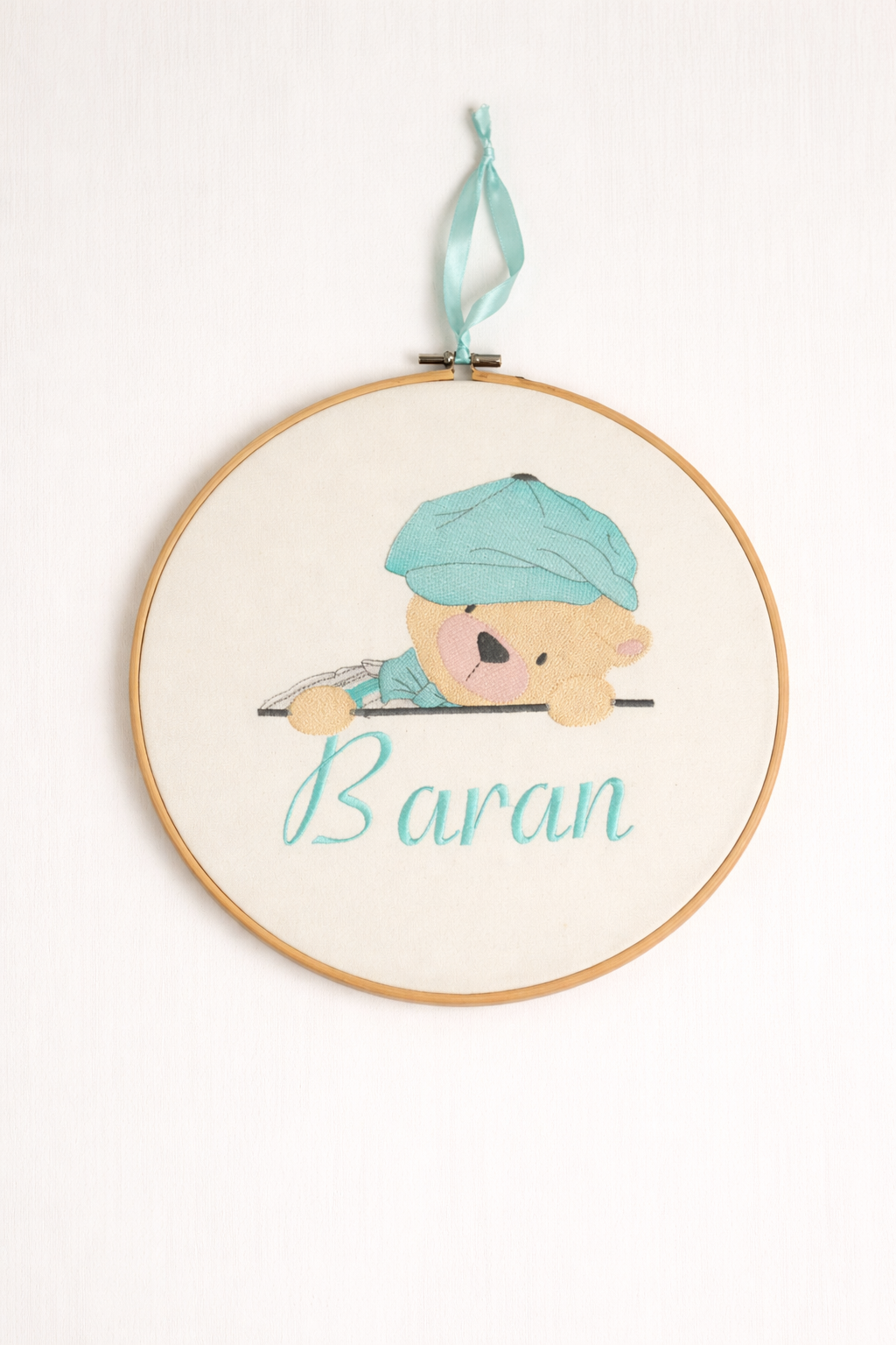 Bebeğinizin odasına veya kapısına zarif bir imza atmaya ne dersiniz? Tamamen el emeğiyle hazırlanan, şıklığı ve kalitesiyle fark yaratan İsim Nakışlı Kasnak Çerçeve, en özel anılarınızı duvarlarınıza taşıyor.