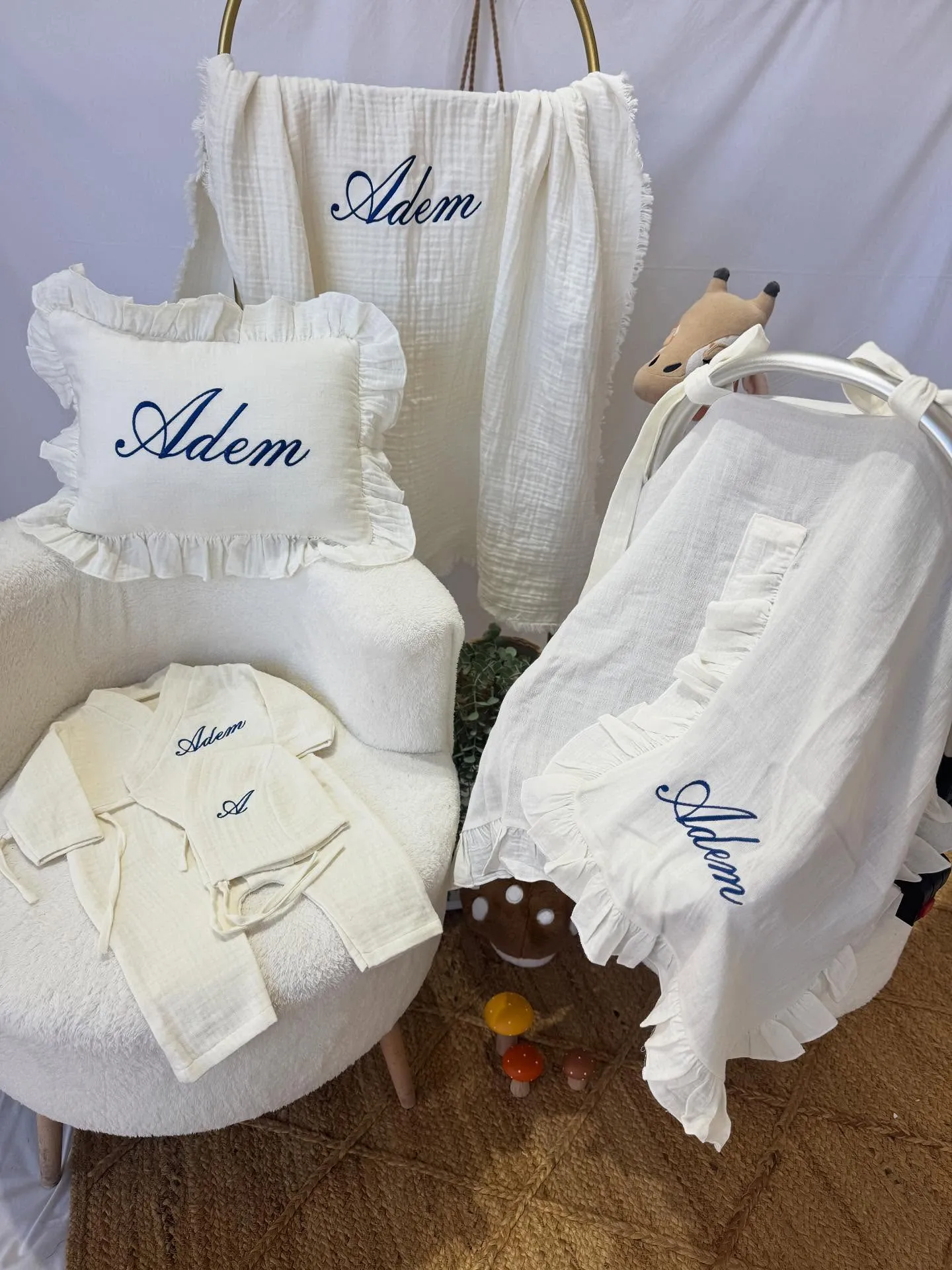 “Müslin Set – Yastık, Battaniye, Puset Örtüsü ve Tulum (Sade)” için yorum yapan ilk kişi siz olun Yanıtı iptal et