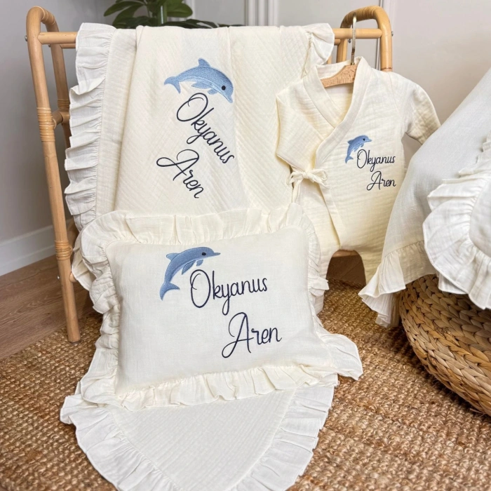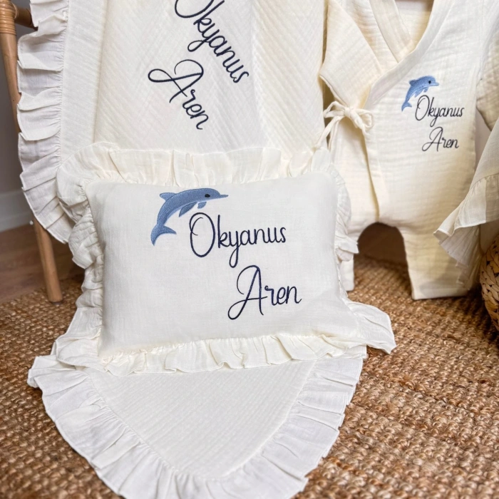 Müslin Set- Yastık, Battaniye, Puset Örtüsü ve Tulum (Yunus Detaylı)