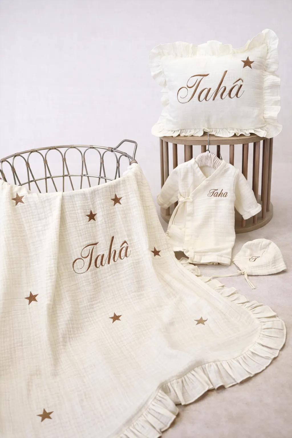 Müslin Set – Yastık, Battaniye ve Tulum (Yıldız Detaylı)