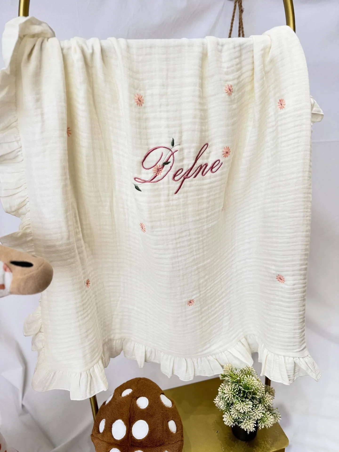 Yenidoğan Müslin Battaniye (Çiçek Detaylı)